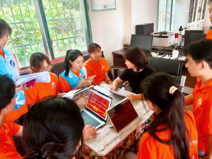 次日,為切實保障青少年兒童安全,與家長凝聚教育共識,服務隊在白溪關村黨群服務中心組織召開家長見面會,二十余名兒童及家長到場參與。團隊指導老師何政在會上表示,“我們帶著使命而來,希望通過陪伴與賦能,讓孩子們在青山綠水間拓寬視野、健康成長”。后續,服務隊將以“科技+文化+生態”融合模式為核心,為孩子們開設紅色教育、自然科學實踐、鄉土文化傳承等特色課程。見面會結束后,部分青少年兒童主動留下寫作業,隊員們紛紛上前輔導,輕松融洽的互動氛圍為后續課程開展鋪墊了良好基礎。