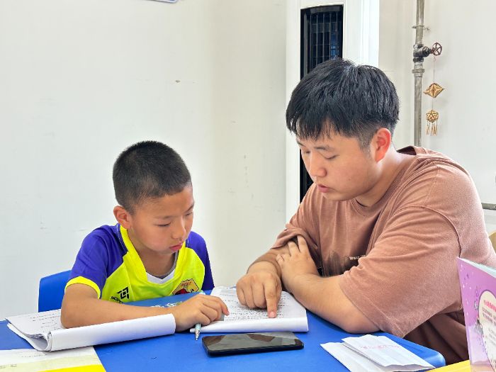 圖為實踐成員為孩子輔導作業。張天昊供圖