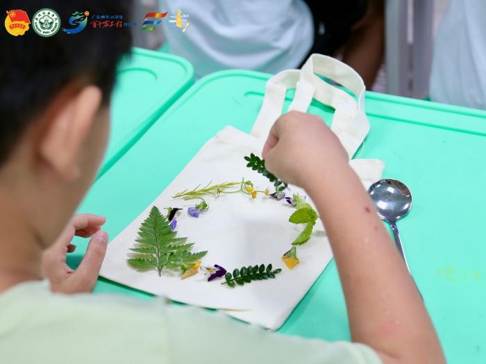 經過一番努力,南澳的草木終于在孩子們的帆布袋上綻放出了別樣的光彩。鋸齒狀的蕨葉、星星點點的花瓣、錯綜復雜的網狀葉脈,這些既是大自然賦予的獨特肌理,也是孩子們奇思妙想的體現。每一個帆布袋都成為了獨一無二的藝術品,承載著孩子們的快樂和對美的理解。