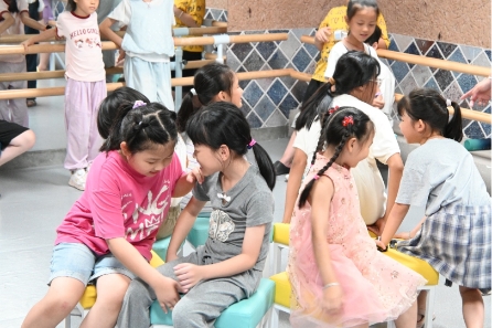 賽場傳真,游戲詮釋成長真諦“我們平時很難開展這樣豐富的活動,大學生們帶來的不僅是道具和流程,更是‘玩中學’的教育思路。孩子們在‘踩報紙’里為了站穩互相遷就,在‘搶凳子’里學會遵守規則,這些都是課本外的重要成長。” 進來學校青少年成長中心館長柯明川感慨道。活動現場,“搶凳子” 游戲緊張刺激,音樂驟停時的迅速反應,讓競爭與歡樂交織,詮釋 “物競天擇,適者生存” 的淺顯道理;“踩報紙” 環節,答錯組對折報紙后堅守的模樣,演繹著團隊共擔、絕不放棄的力量,恰似 “人心齊,泰山移” 的生動注腳。從成長中心圖書館發券開啟挑戰,到各教室游戲闖關積累收獲,再到教室七兌換獎品,流程清晰又滿是期待。棒棒糖的甜蜜、熊貓線裝本的別致,是努力后的犒賞,更是成長的具象見證。
