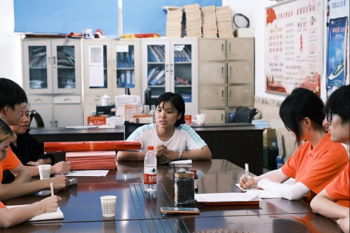 圖為“治水七星隊”與白箬鋪鎮黃泥鋪村村委會工作人員合影 政企聯動:摸清治理資金脈絡。團隊首站走進黃泥鋪村村委會,與村干部深入座談,系統梳理污水治理工程的資金構成與運作機制。從初期管網鋪設的財政補貼,到集中處理設施的運維資金來源,隊員們詳細記錄項目全鏈條的資金流轉邏輯,重點關注政策資金與村級自籌的配比結構,為分析金融工具的介入空間收集第一手資料。村干部介紹:“目前主要依賴上級撥款和村民少量付費,長期運維還需更穩定的資金渠道。”座談中,團隊特別詢問了村級集體經濟狀況、村民支付意愿的上限以及過往尋求社會資本合作的經驗與難點,初步評估了該村對創新融資模式的接受度和承載力。