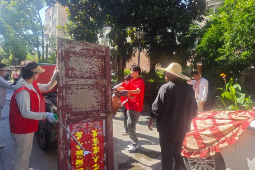 圖為實踐團(tuán)隊開展線下調(diào)研并協(xié)助社區(qū)清掃衛(wèi)生。曾悅 供圖