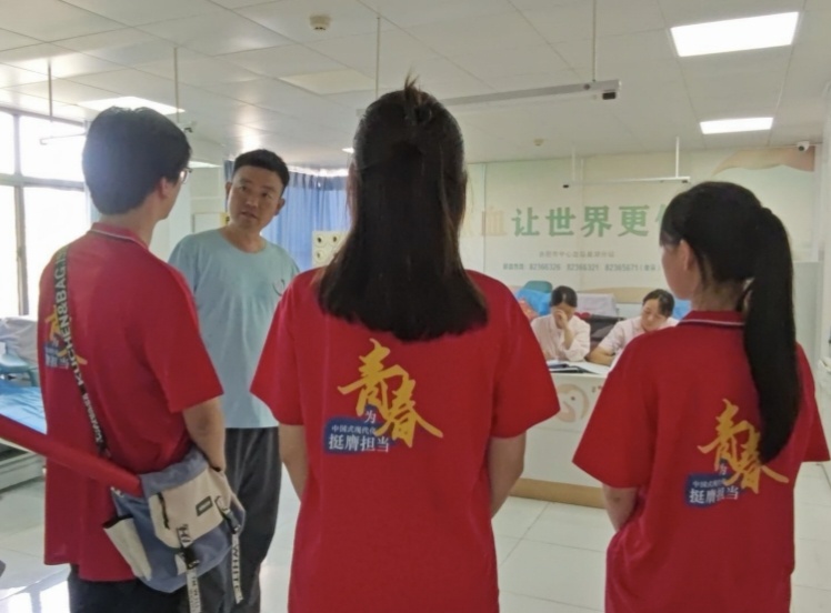 圖為實踐團(tuán)隊前往巢湖市獻(xiàn)血站與站長溝通。曾悅 供圖