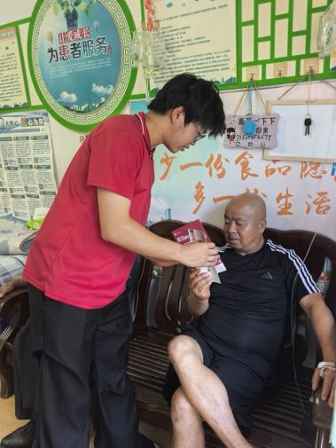 巢湖學(xué)院赴巢湖鄉(xiāng)鎮(zhèn)“獻(xiàn)血賦能·健康調(diào)研”宣傳團(tuán)——半湯診所發(fā)放宣傳單和問(wèn)卷,普及獻(xiàn)血相關(guān)衛(wèi)生知識(shí)