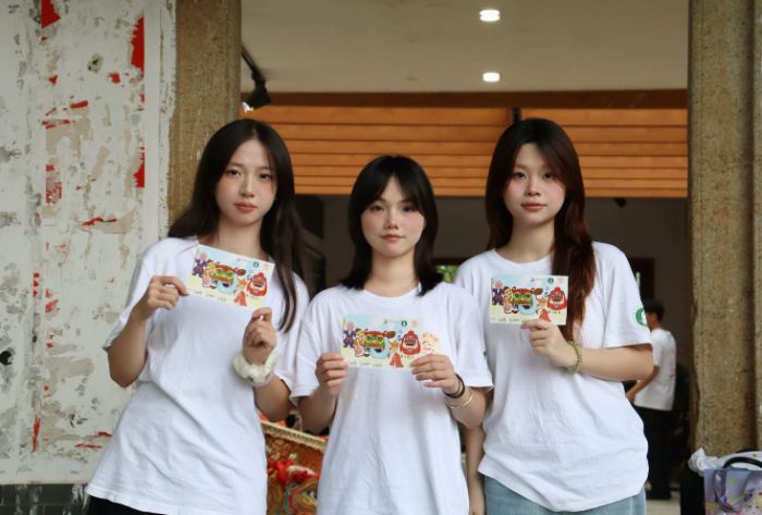 現場設置的 “套小鴨”“顏色歸類大作戰”“蒙眼敲鑼”“趕動物回家”“乒乓球大作戰” 等游戲區,成了孩子們的歡樂天地。在各個游戲區,孩子們都展現出極大的熱情,每一次參與都充滿了純真的期待與歡樂。參與者們手持集滿印章的卡片前往兌獎區時,一條洋溢著成就感的長隊悄然形成。此時,隊員們向大家分發了精心設計的明信片式問卷。這份問卷由陳鈺娟、陳柳媚、紀秀芬三位隊員操刀,融合了貓頭獅、茶文化與《西游記》人物等元素,既具藝術感,又巧妙傳遞了高埔崗社區的文化特色。通過問卷,活動方得以深入了解公眾對貓頭獅文化與茶道文化的認知,也讓傳統文化在互動中悄然滲透。?
