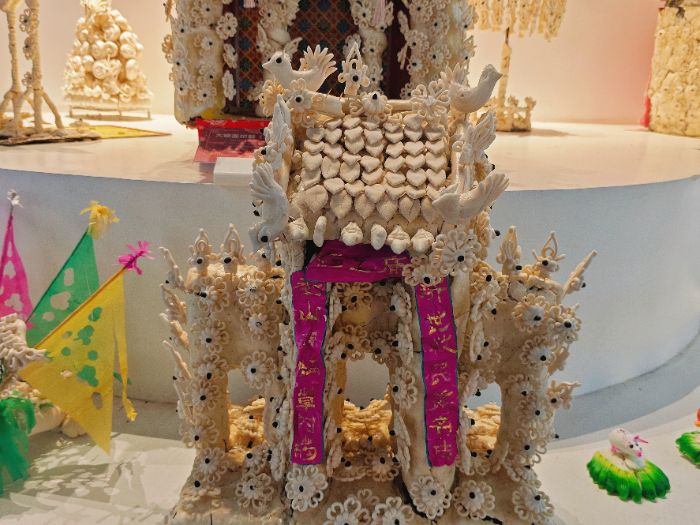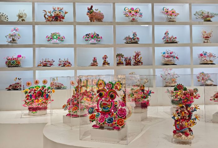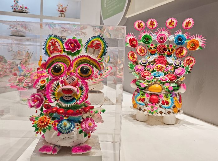 渭南市非物質文化遺產展示傳習館展廳面積1300平方米,展出的萬余件展品涵蓋全市國家級、省級、市級重要非遺項目共223項。琳瑯滿目的展品間,花饃以絢麗的色彩和極具特色的傳統文化魅力深深吸引著觀展的游客,讓人在指尖的技藝中感受非遺文化的生生不息。