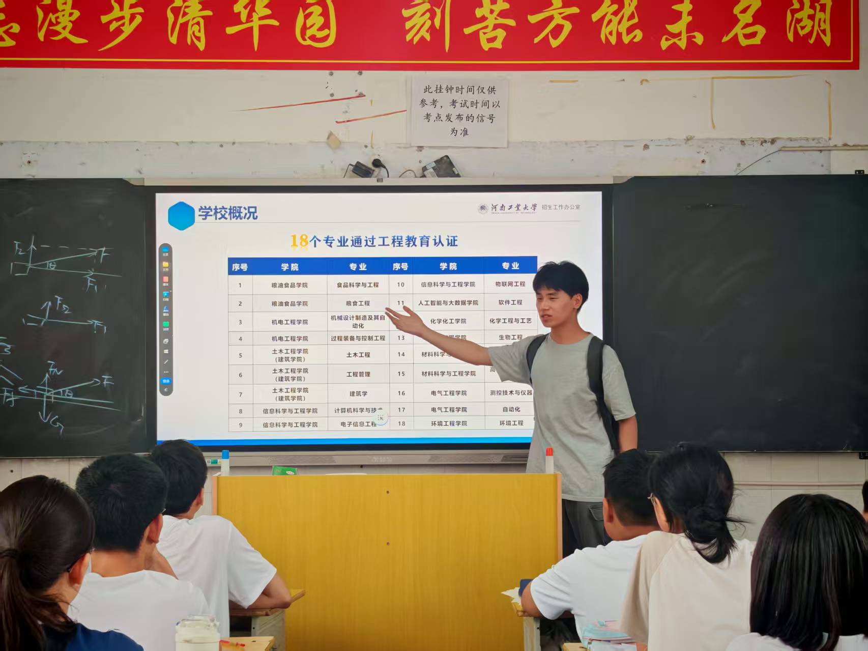 活動現場,宣講團隊成員通過精美的PPT、生動的視頻和豐富的案例,全面展示了河南工業大學的校園風貌、學術氛圍和人才培養成果。在介紹土木工程學院時,著重強調了學院在教學、科研、實踐等方面的優勢,讓學弟學妹們對土木工程專業有了更深入的認識。
