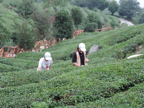(圖為小橙故事實踐隊隊員體驗采摘茶葉)