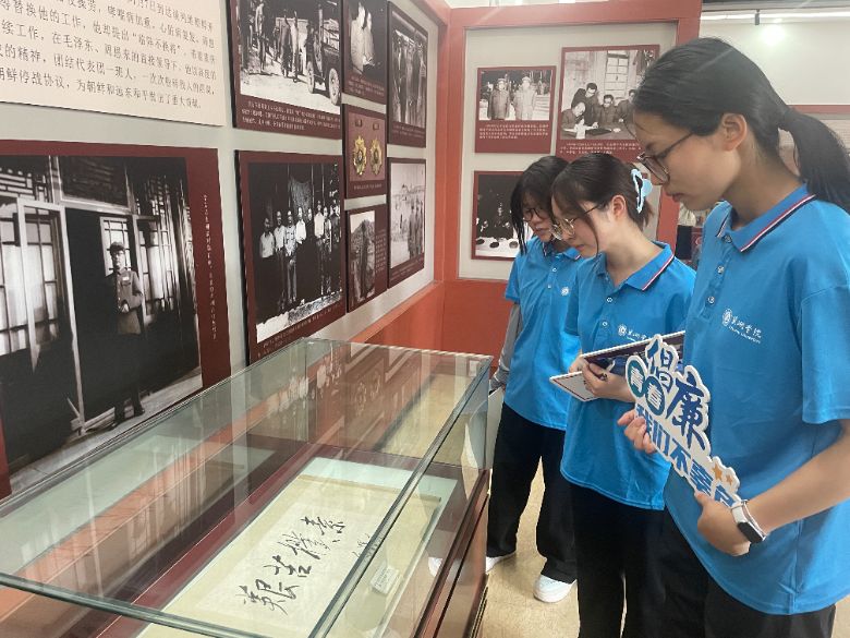 在復(fù)原的會(huì)客室場(chǎng)景中,未加漆飾的方桌與普通木椅營(yíng)造出簡(jiǎn)樸氛圍,讓實(shí)踐團(tuán)成員感慨萬千:"這種極致樸素的生活作風(fēng),正是共產(chǎn)黨人自律精神的具象化呈現(xiàn),與廉潔文化的精神內(nèi)核一脈相承。"調(diào)研過程中,師生們分工協(xié)作,通過影像記錄、文字采集等方式系統(tǒng)留存展陳資料,并與現(xiàn)場(chǎng)參觀者深入交流,全面了解公眾對(duì)新時(shí)代廉潔文化教育的認(rèn)知與期待。