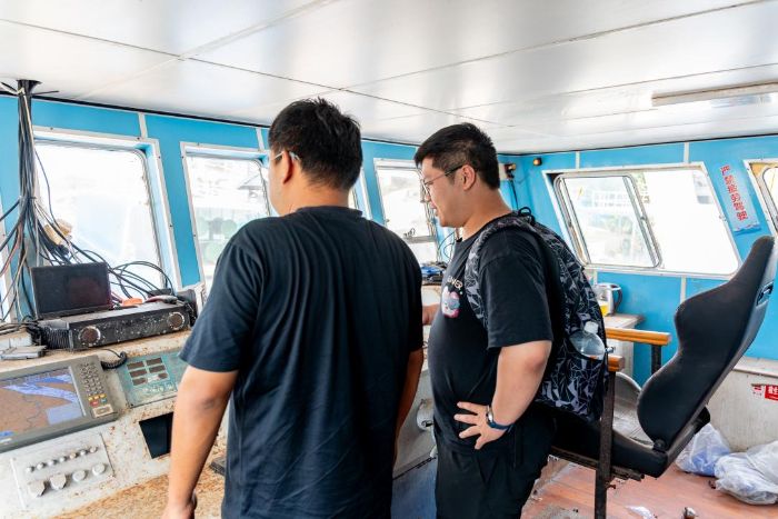 圖為團隊成員參觀漁船的駕駛室 潘弈攝