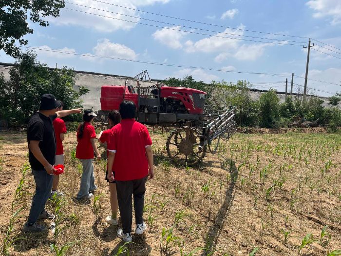 調研伊始,團隊成員走進村內的玉米地,現代化農業設備的身影映入眼簾。多臺智能農藥噴灑機正在田間有序作業,其精準的噴灑范圍和高效的作業效率,讓成員們直觀感受到科技為農業生產帶來的變革。田間的玉米長勢喜人,翠綠的葉片在風中舒展。據當地農戶介紹,這里采用玉米與小麥隔行混種的種植模式,是村民們根據兩種作物的生長習性摸索出的經驗之法,此舉有效提高了土地利用率,實現了一畝地兩份收成的良好效益,讓團隊成員對村民的智慧贊嘆不已。