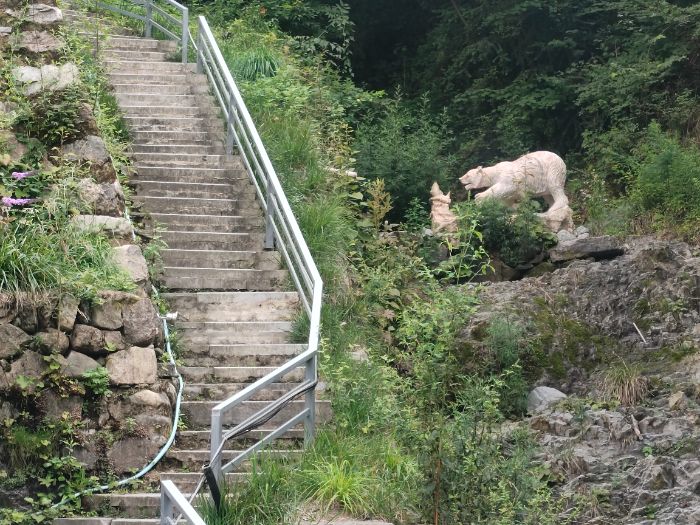 最后,實踐隊前往當地極具特色的綿兮簌民宿進行調查研究,綿兮簌幾乎看不到夯土痕跡,卻最大限度保留了地形原貌。建筑隨坡就勢,緊密結合當地地形展開設計,微型山水景觀、傍山露臺、涼亭等空間,模糊了人與自然的界限,實現建筑與環境的有機融合。