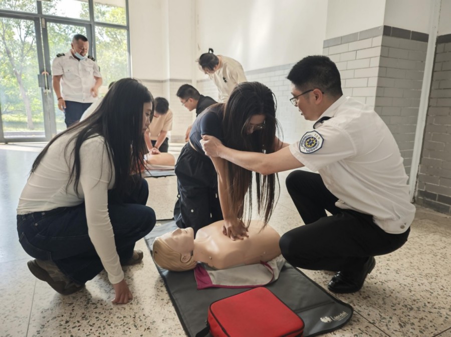 “救命的黃金時刻是最初4-6分鐘”,鹽城急救中心培訓科科長邱國軍告訴志愿者們,通過模擬人實操演示心肺復蘇按壓深度、頻率等關鍵要點,操作AED設備“開機-貼電極-聽指令”等標準化流程,并針對嬰幼兒及成人海姆立克法的差異進行分組演練。
