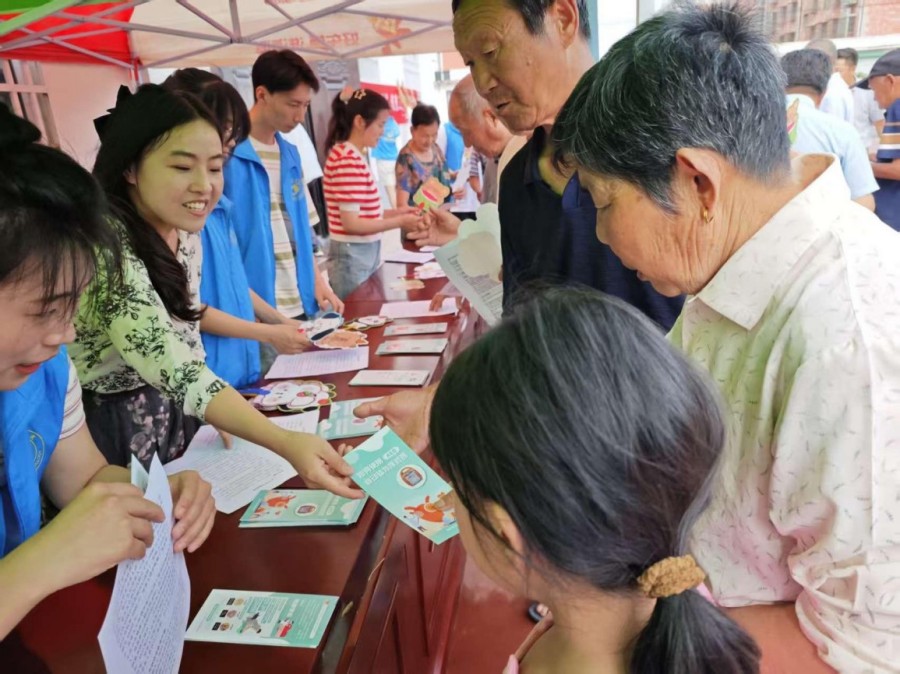 圖3志愿者給居民發放宣傳手冊(吳灘社區)
