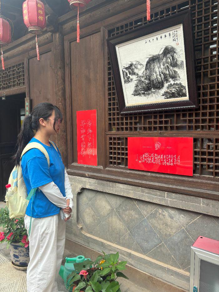 在藝術館講解員的引導下,實踐隊成員參觀了張向宏大師畫筆下精美絕倫,令人嘆為觀止的立體中國山水畫。講解員告訴我們立體中國山水畫神奇之處在于畫作能卷軸,現透明,集雕塑、國畫、油畫的技法于一身,栩栩如生,別具一格。在近距離觀賞中,隊員們深刻感受到張向宏大師對中華優秀傳統文化的創造性轉化與創新性發展。他不僅傳承了中國山水畫的寫意精神,更突破傳統二維平面的限制,賦予畫作三維空間的縱深感,使層巒疊嶂、云霧繚繞的意境更具沉浸感。在這里,隊員們深刻地感受到大師作畫技藝的高超和立體中國山水畫的獨特魅力。