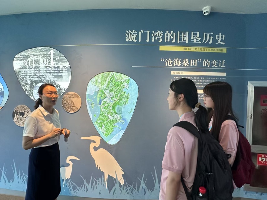 公共管理學院浙里“濕”意·共富同行暑期社會實踐團呂華科長為實踐團介紹漩門灣歷史