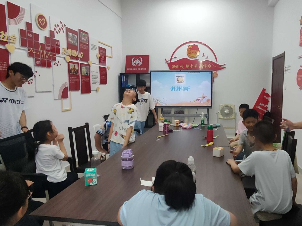 在日常互動中,志愿者們始終堅持引導式教育理念。當孩子們因爭搶文具產生分歧時,團隊成員沒有急于下結論,而是為雙方創造平等表達的機會,鼓勵他們依次講述事情的經過和內心的想法。在志愿者的循循善誘下,兩名發生爭執的男孩開始嘗試理解對方,穿藍色衣服的男孩先說道:“剛剛說你的作品不好,是我考慮不周到。” 另一位孩子也反思道:“我不該直接拿走你的材料,應該先問問你。” 這樣的對話,讓原本的矛盾悄然轉化為相互理解的契機。