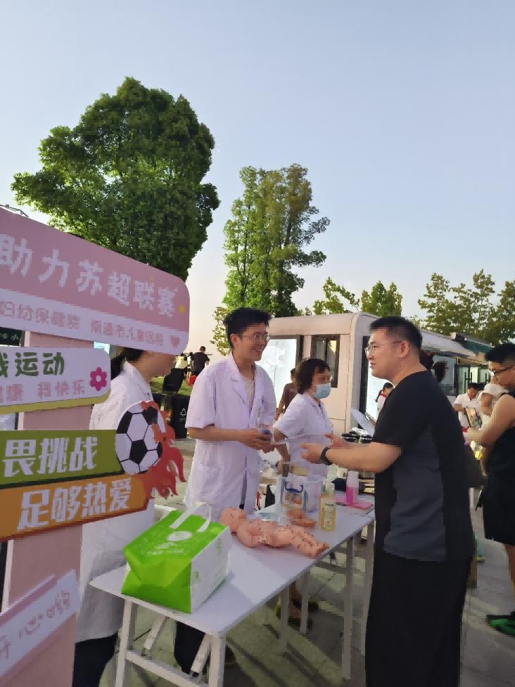 當激情四射的足球賽事遇上源遠流長的中醫藥文化,會碰撞出怎樣的火花?7月19日晚,在南通紫瑯湖蘇超聯賽第二現場,一場別開生面的青年志愿服務活動吸引了眾多市民的目光。南通大學醫學院"新思路 健康行"社會實踐團隊聯合南通市婦幼保健院,組織博士研究生、留學生和研究生志愿者,身著傳統漢服開展中醫義診服務,以青春之姿傳播健康理念,以文化自信助力健康中國建設。