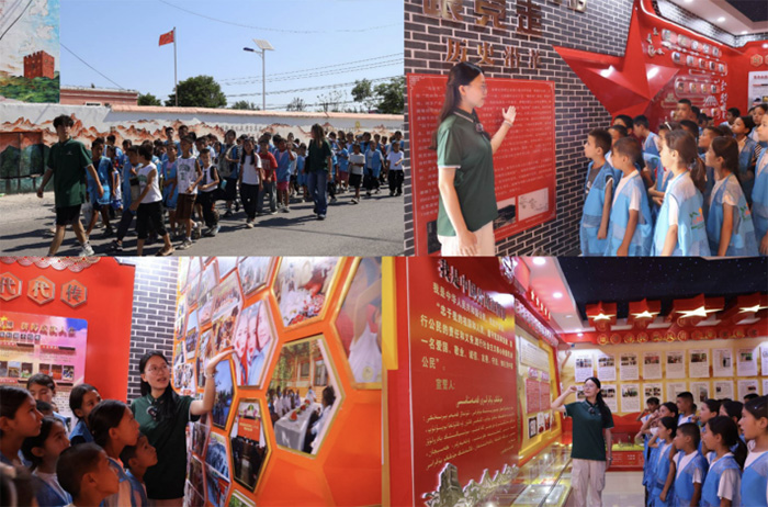 見證鄉土變遷,厚植家國情懷。在“歷史文化”區域,泛黃的入黨志愿書、銹跡斑斑的勞動勛章、新舊對比的村莊照片,訴說著各民族黨員群眾團結一心,共赴美好生活的的光輝事跡。“以前村里是土路,現在柏油馬路通到家門口;過去靠天吃飯,如今6300畝現代化杏園讓大家腰包鼓起來。”講解員用大家身邊的例子,帶領小朋友感受新疆的發展變化。