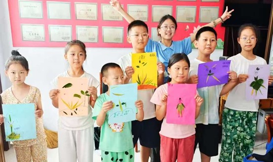 在植物學(xué)課堂環(huán)節(jié),支教隊員依托圖文展示,開展植物知識教學(xué)。講解內(nèi)容覆蓋植物各構(gòu)成部分:介紹負責(zé)從土壤吸收養(yǎng)分的根系,支撐植株形態(tài)的莖干,執(zhí)行光合作用的葉片,以及承擔(dān)孕育種子功能的花果 ,完成植物構(gòu)成要素的系統(tǒng)闡釋。教學(xué)推進至互動環(huán)節(jié),組織孩子們分組開展接力繪畫,以協(xié)作形式共同完成葉片主題創(chuàng)作;進入觀察環(huán)節(jié)后,引導(dǎo)學(xué)生手持葉片,對葉脈紋路進行辨別,借助交流行為,深化其對植物特征的認知,幫助學(xué)生建立對自然生命特點的直觀感知 。