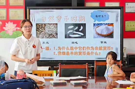 貨幣知識課程以互動形式展開。老師結(jié)合實物展示,梳理從古代的貝殼、銅錢講到現(xiàn)代紙幣貨幣形態(tài)的演變歷程;通過貨幣交換,讓孩子們在角色扮演中理解貨幣的流通功能。課堂上,孩子們積極參與實踐,建立對貨幣的基礎(chǔ)認知,加深了對于金錢的認識。