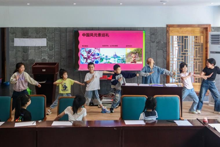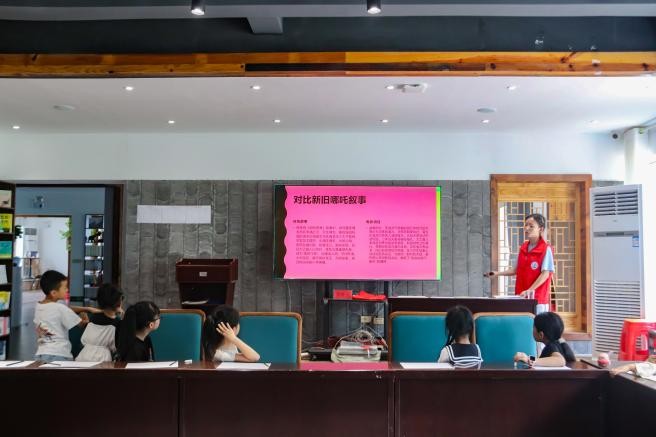 為了進一步加深孩子們對電影人物的理解,趙雪老師邀請孩子們上臺表演電影中的經典場景。孩子們分組合作,模仿哪吒和其他角色的動作與臺詞,通過親身參與,他們更深刻地感受到了角色的情感與電影的魅力。這一環節不僅鍛煉了孩子們的團隊協作能力,還增強了他們對藝術作品的感知與理解。