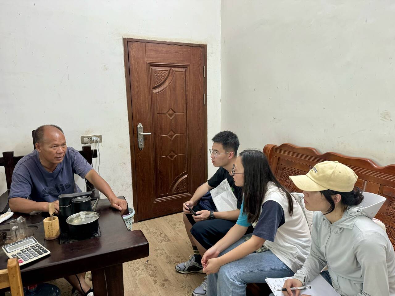 圖為團隊成員與百朋鎮人民政府農業服務中心覃主任及原百朋鎮農技推廣站蒙站長交流訪談,潘芝琳攝