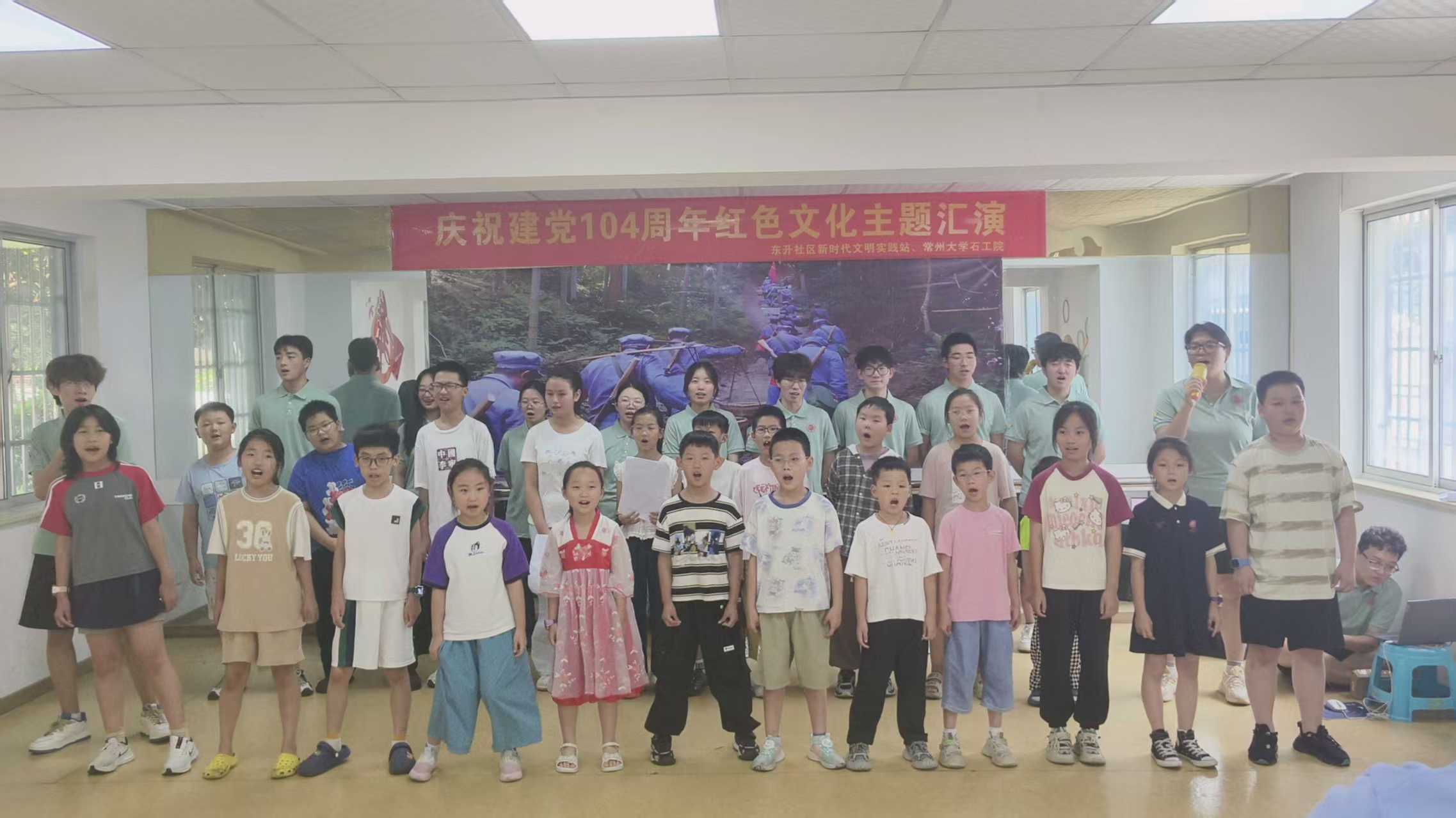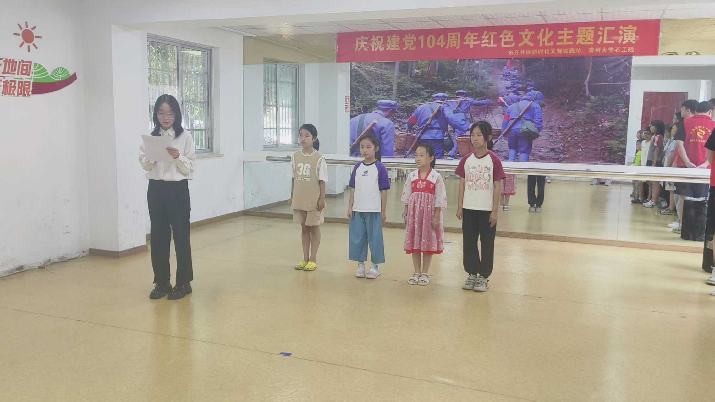 次日,東升社區暑托班的教室又變成了紅色劇場。常州大學夏日螢火志愿團隊精心策劃的紅色文化匯演溫情上演,以孩子們喜聞樂見的形式解讀信仰,傳遞力量。