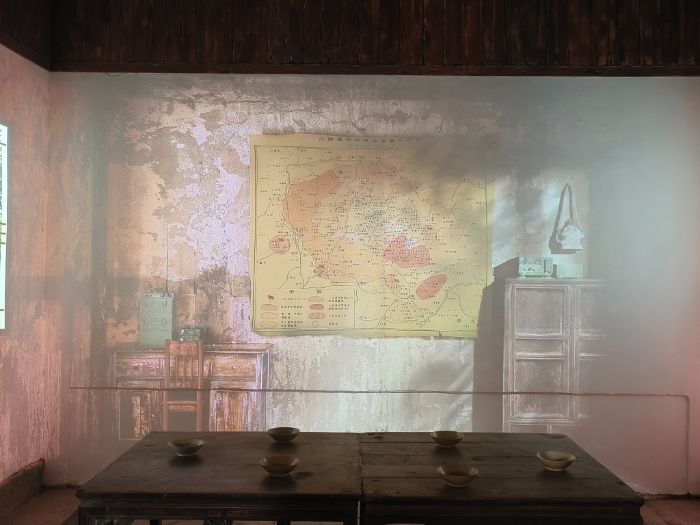 在“凱歌高奏大巴山”展區,我看到了一系列重要戰役的作戰地圖、戰斗遺物等,它們生動展現了紅四方面軍在川陜地區粉碎敵人“三路圍攻”“六路圍剿”等戰斗場景,展現了革命先輩高超的軍事指揮藝術和卓越的戰略眼光。其中,空山壩大捷的展陳直擊人心,讓我深深收到震撼。標注“口袋陣”戰術的地圖上,紅黑線條勾勒出“誘敵深入”的精妙,展柜里帶缺口的馬刀、群眾制作的土制地雷,都是激戰的見證。光影復原的雨夜突襲場景中,紅軍以少勝多擊潰敵軍,那沖鋒號聲似仍在山谷回蕩。