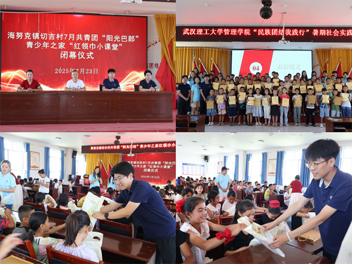 7月23日上午,武漢理工大學管理學院“民族團結我踐行”紅領巾小課堂結課儀式在新疆伊犁切吉村順利舉行。以“推普助力促團結,五育并舉潤童心”為宗旨,實踐隊系統籌劃、精心設計了涵蓋理論教學、課后輔導、實踐養成、文體活動、參觀調研為一體的課程體系,并將五育元素融入全程,在推廣普通話的同時,開展鑄牢中華民族共同體意識教育,有形有感有效地推動了各民族小朋友的交往交流交融,將“民族團結同心圓”畫在大家心中。