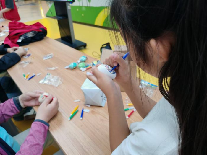彩蛋繪新:傳統符號的童趣表達 “畫彩蛋”區堪稱全場最熱鬧的角落。工作人員早已備好環保塑料彩蛋、無毒顏料和細尖畫筆,等待參觀者揮灑創意。剛上二年級的萌萌在彩蛋上畫了個“會飛的粽子”,翅膀涂成漸變粉,還歪歪扭扭寫了“端午快樂”;旁邊的大叔則偏愛傳統紋樣,用墨綠顏料畫了纏枝蓮,說要給孫子當“文化教具”。這些或稚拙或精致的作品,把龍舟、粽子、艾草等傳統元素,變成了可觸摸的文化符號。
