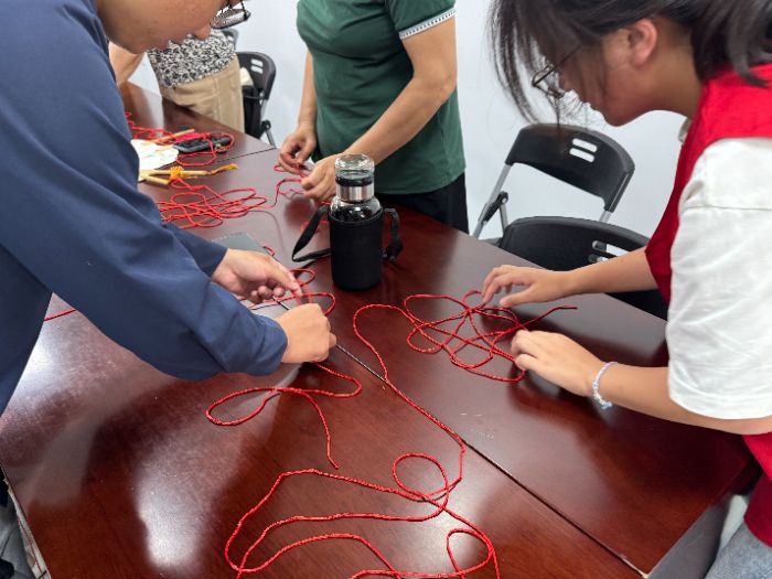 多元科普聯(lián)動,搭建文化溝通橋梁 活動開篇的科普環(huán)節(jié)頗具創(chuàng)意,團隊突破傳統(tǒng)宣講模式,運用PPT、視頻及問答互動等多種方式,系統(tǒng)介紹非遺知識。其中,PPT的設(shè)計花費了團隊大量心血,制作團隊深入研究漆扇和中國結(jié)的技藝細節(jié),將漆扇制作的“漂漆”過程轉(zhuǎn)化為生動的動態(tài)畫面,大漆在水中的暈染、扇骨與色彩的交融過程清晰可見,讓抽象的技藝變得觸手可及;中國結(jié)的編織步驟則通過高亮動線實時展示,復雜的“盤長結(jié)”結(jié)構(gòu)在動態(tài)演示下變得直觀易懂。配合精心剪輯的視頻解說,講述非遺傳承人的故事與技藝背后的文化內(nèi)涵,再加上趣味十足的問答互動,參與者們積極舉手搶答,在輕松愉快的氛圍中快速走進非遺世界,對傳統(tǒng)技藝有了全面且深刻的初步認知。