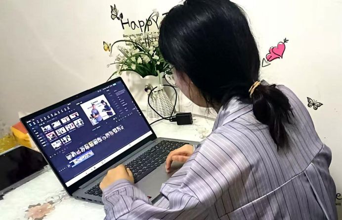圖為實踐隊員進行視頻剪輯。左秀供圖