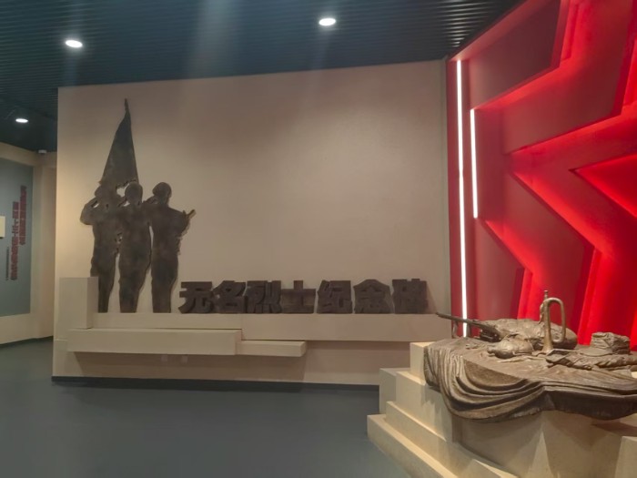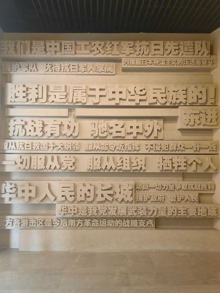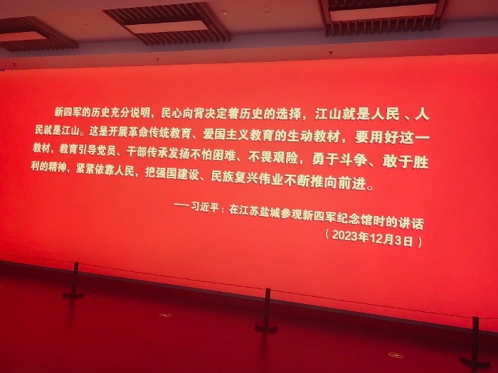 踏入新四軍紀念館,首先映入眼簾的是氣勢恢宏的新四軍群雕。戰士們身姿挺拔、神情堅毅,仿佛正奔赴抗日前線。群雕后方的序廳大屏,循環播放著新四軍戰斗紀實影像,槍炮聲、吶喊聲交織,瞬間將我拉回那個烽火連天的年代,內心的崇敬與震撼油然而生,也讓我對接下來的參觀充滿期待。