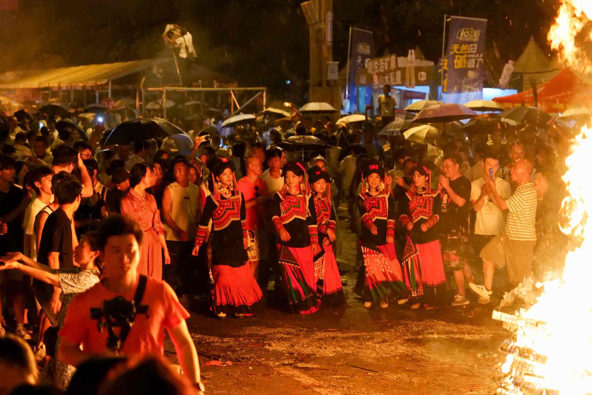 夜幕降臨,涼山大地被歡騰的氛圍籠罩,一年一度的彝族火把節(jié)慶典如期而至。實(shí)踐隊(duì)隊(duì)員們與各族群眾一同聚集在廣場上,當(dāng)?shù)厝罕娚碇k麗的民族服飾——彝族的百褶裙、苗族的銀飾、漢族的藍(lán)布衫交相輝映,每個人臉上都洋溢著喜悅的笑容。