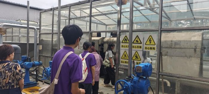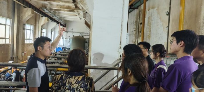 在整體安全告知和功能介紹結束后,孫科長根據污水凈化處理的全流程,帶領大家一步步見證“惡臭”變“清泉”的過程,首先從雜質過濾層面,實踐隊成員走進雜質過濾池,詳細觀看過濾機器是如何將各類污水進行初步過濾的,親眼看到雜質是如何被提取,也清晰感受到雜質處理的不易,在同學們已經感受到過濾完成的時候,據孫科長介紹:“后續還有至少5道工序繼續處理雜質。”,這個復雜且有序的過程引起了一眾師生在日常用水中的反思。