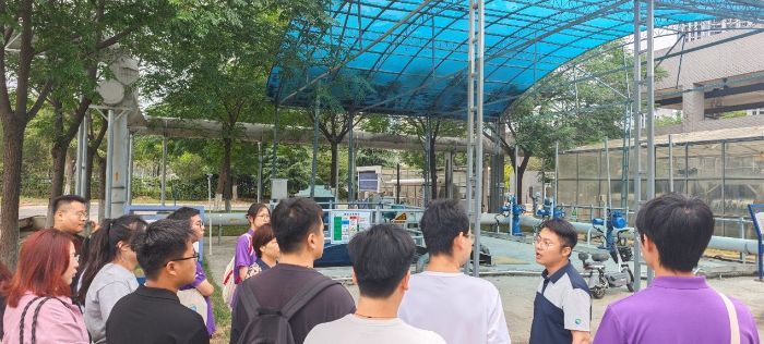 在凈水公司技術專家孫健科長帶領下,實踐隊全體成員及我院水利、環境專業的部分碩士和博士研究生一同開啟了污水凈化的“神秘之旅”,實地參觀學習了污水“預處理+生化處理+深度處理”全流程凈化工藝。