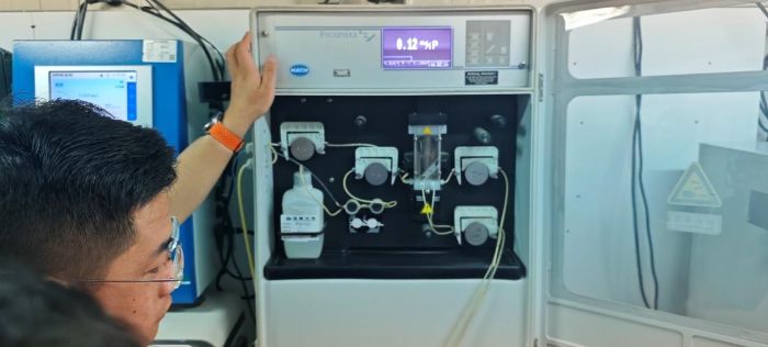 在桃花潭監測點,實踐團隊參觀了現代化水質監測設施。監測站技術負責人詳細介紹了當前的水質監測體系:“我們采用在線監測與人工采樣相結合的方式,對COD、氨氮等常規指標進行實時監控,但對部分新興有機污染物的監測仍存在技術瓶頸。”這一現狀凸顯了水質監測技術升級的迫切需求。