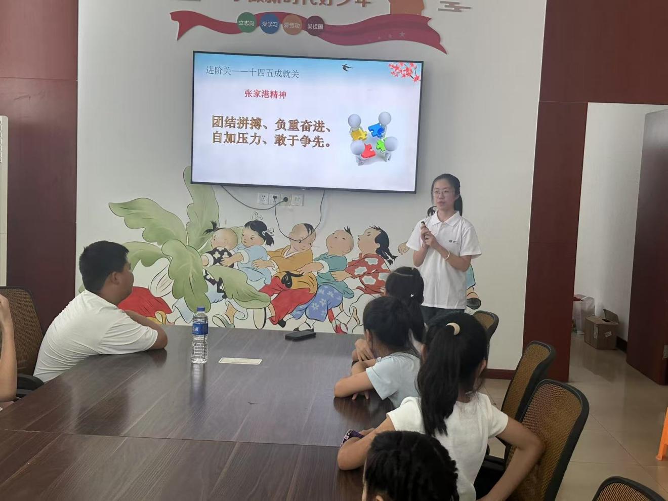 在方言課堂的"紅色故事會(huì)"環(huán)節(jié),志愿者深情講述了張家港精神的時(shí)代內(nèi)涵。通過(guò)《一把鐵鍬改變一座城》的生動(dòng)事例,孩子們了解到"團(tuán)結(jié)拼搏、負(fù)重奮進(jìn)、自加壓力、敢于爭(zhēng)先"的張家港精神如何從江邊小城孕育而生。當(dāng)屏幕上出現(xiàn)張家港從蘆葦灘到現(xiàn)代化港城的對(duì)比照片時(shí),孩子們發(fā)出陣陣驚嘆。"原來(lái)我們張家港人這么了不起!"一位小男孩驕傲地說(shuō)道。志愿者還特別設(shè)計(jì)了"精神傳承卡"互動(dòng),讓孩子們寫(xiě)下自己理解的張家港精神,不少孩子認(rèn)真地寫(xiě)下"要像建設(shè)港城的前輩一樣不怕困難"。這些質(zhì)樸的文字,正是紅色基因在新時(shí)代少年心中生根發(fā)芽的最好見(jiàn)證。
