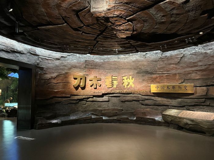 進入中國木雕博物館,映入眼簾的是一幅描繪中國長城的木雕作品。館內明亮通透,設有六個展廳——歷史廳、生活廳、大師廳、世界廳、竹藝廳及家訓館。一樓還設有許多玻璃木雕館藏。