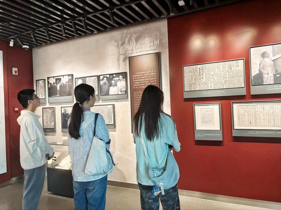 離開史料陳列館后,中共代表團(tuán)舊址映入眼簾:青灰色的建筑外觀質(zhì)樸而厚重,推開門,歲月的痕跡撲面而來(lái)。在舊址內(nèi),成員們的目光被陳列的舊物吸引——布滿劃痕的辦公桌、掉漆的木椅,以及昏黃的臺(tái)燈,它們?cè)惆橹芏鱽?lái)等老一輩革命家度過無(wú)數(shù)個(gè)為革命事業(yè)操勞的日夜。“1946年的談判現(xiàn)場(chǎng),前輩們就是在這樣的環(huán)境里,為了和平與正義據(jù)理力爭(zhēng),每一個(gè)細(xì)節(jié)都滿是使命感。”團(tuán)隊(duì)成員們站在舊址中輕聲感慨,話語(yǔ)里滿是對(duì)革命先輩的崇敬。