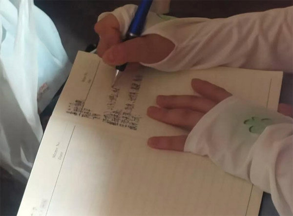 實踐隊隊員翟得巧記錄老人所講的非遺技藝的故事和細節