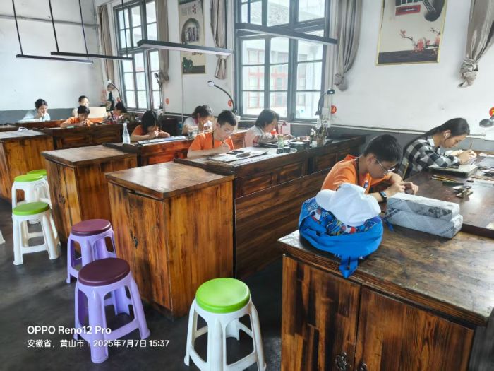 2025年7月7日下午,在參觀完制墨車間后,TFO智能數遺小組移步描金與歙硯車間,感受傳統藝術的細膩之美。