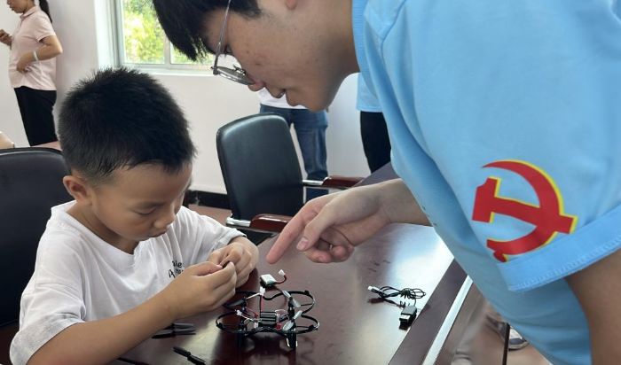 科普宣傳立體化,打開鄉(xiāng)村少年新視角 為使科技的種子在鄉(xiāng)村孩子的心中生根發(fā)芽,突擊隊圍繞 “無人機趣探鄉(xiāng)村”這一主題,精心打造了無人機科普課堂。隊員們引導(dǎo)孩子們合作組裝無人機,并搭配炫酷的飛行表演,瞬間激發(fā)了孩子們的好奇心。同時,用淺顯易懂的語言講解相關(guān)原理,帶領(lǐng)孩子們操控?zé)o人機俯瞰田野與村落,將科技的魅力與鄉(xiāng)村的景致巧妙融合。活動中,隊員們還設(shè)計了互動任務(wù),讓孩子們從無人機的視角尋找自家農(nóng)田、辨識農(nóng)作物,在實踐過程中獲取新知識。借助無人機這一新農(nóng)技 “窗口”,為鄉(xiāng)村少年開啟了科技興農(nóng)的全新視野,播撒下科技改變鄉(xiāng)村的希望種子。