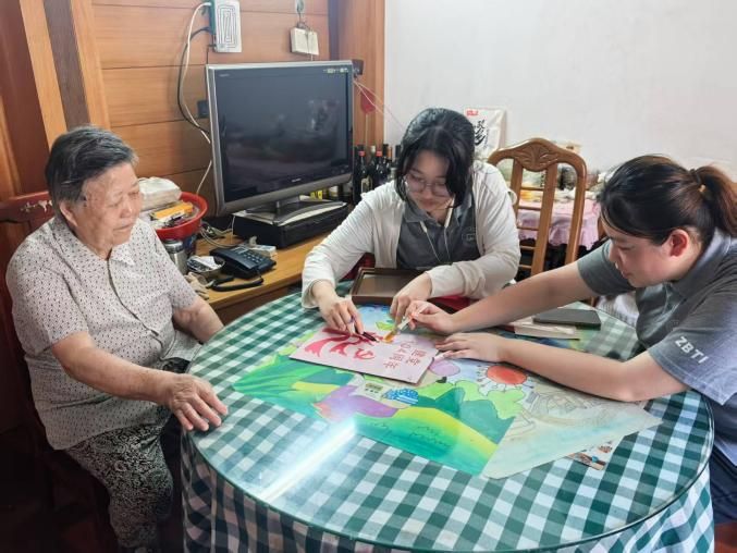 在喜迎中國共產黨成立104周年之際,為賡續紅色血脈,弘揚尊老敬老傳統美德,彰顯新時代青年的責任擔當,6月30日下午,由浙江工商職業技術學院經管學院社工專業學子組成的“暖夕志愿服務隊”,帶著節日的祝福與青春的活力,再次走進新典社區,以一場融合“紅色傳承”與“專業為老”的金箔畫創作活動,為空巢獨居長者送上節日溫情,也上了一堂生動的實踐黨課。