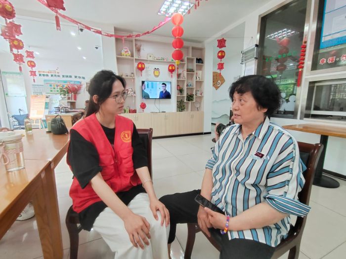 (圖為志愿者與結對老人在服務中心聊天。樓藝凡 供圖)
