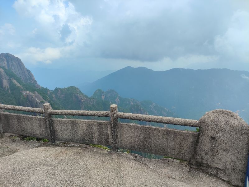 下午4點穿過擁擠的人群和一段段連綿不絕的階梯,終于來到了黃山第二峰光明頂,看向遠處的群山已經隱隱埋葬于云海之中,不見蹤跡。