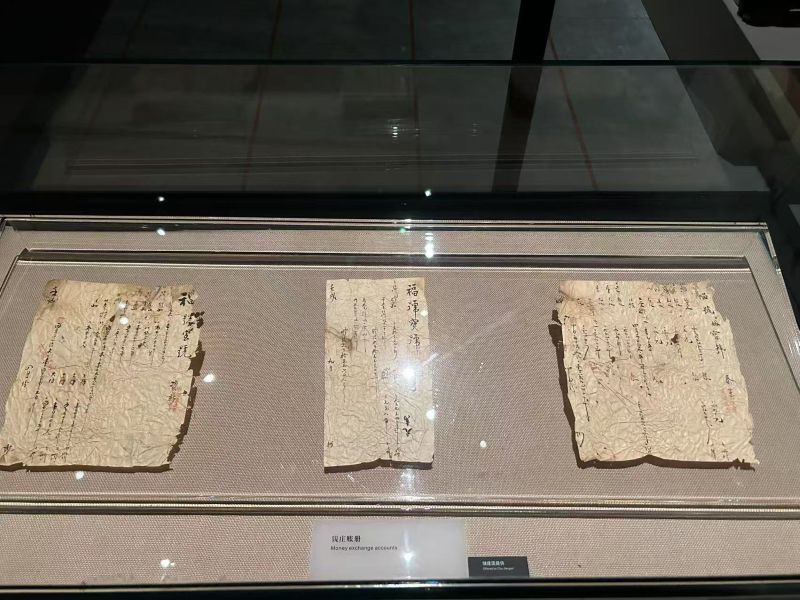 實踐團隊成員首先來到了寧波幫博物館,踏入寧波幫博物館,古樸厚重的氛圍撲面而來,最引人注目的便是金融專區(qū),。這里陳列的票據(jù)、賬本、牌匾等每一件事物都是往昔歲月的見證。團隊成員圍聚在展品前,仔細觀察著錢莊交易憑證上的特殊印記,這些印記與標識,蘊含著無盡的奧秘。