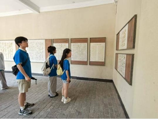 (圖為實踐隊員參觀毛澤東詩詞對聯書法藝術碑廊。通訊員 肖伯健 攝)
