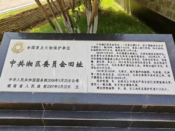 (圖為中共湘區委員會舊址暨毛澤東楊開慧故居石碑。通訊員 肖伯健 攝)